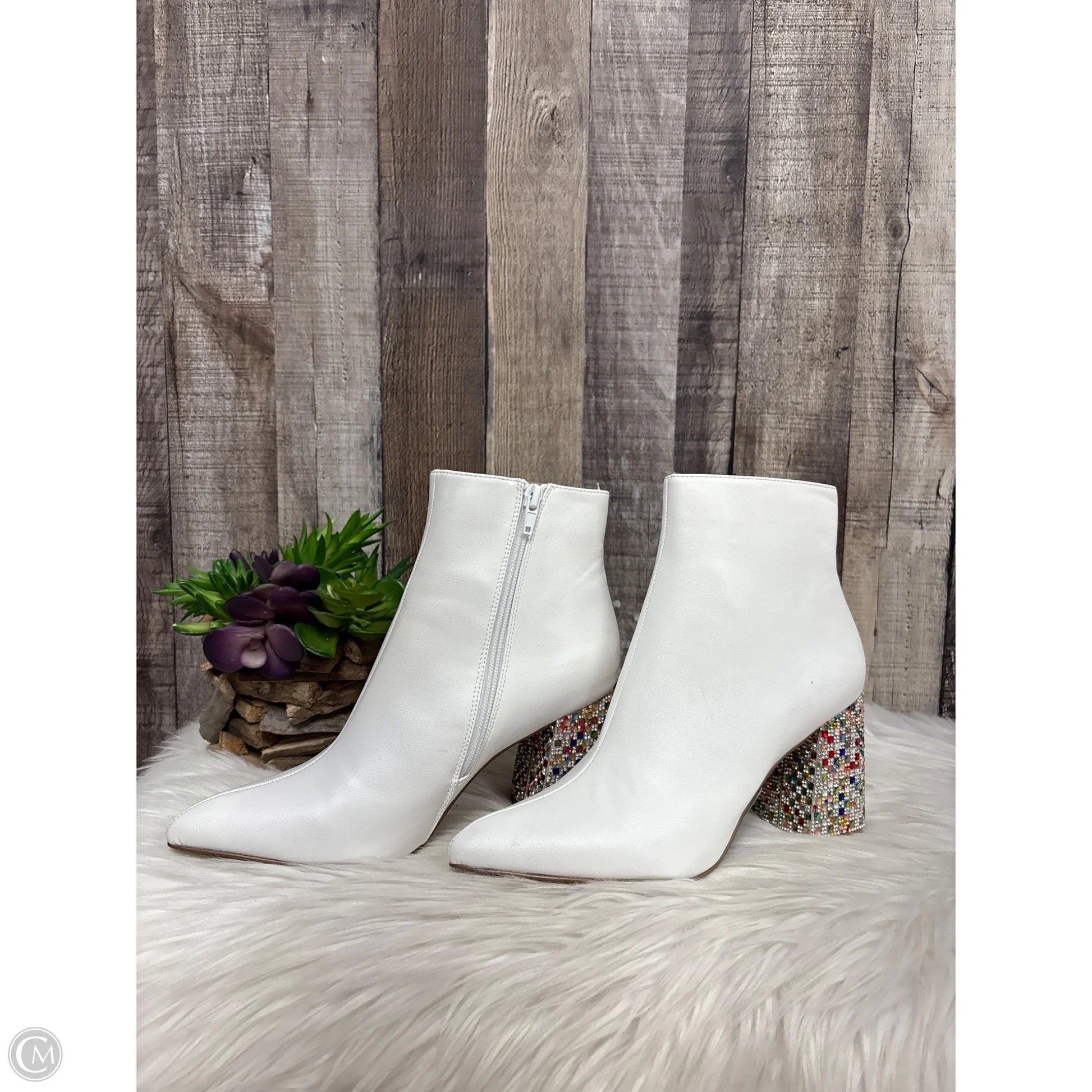Boots Ankle Heels By Betsey Johnson In White, Size: 8