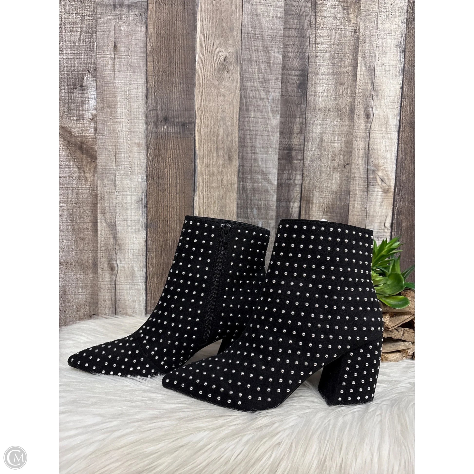 Boots Ankle Heels By Cme In Black & Silver, Size: 7.5