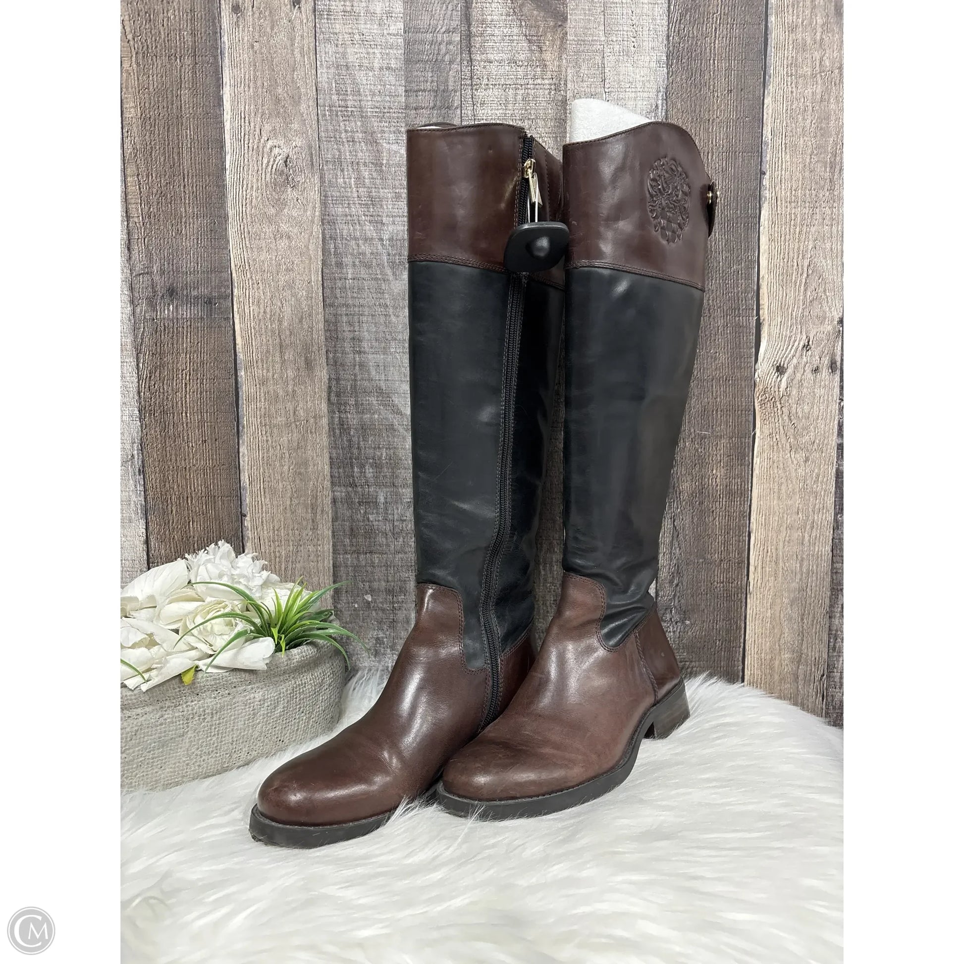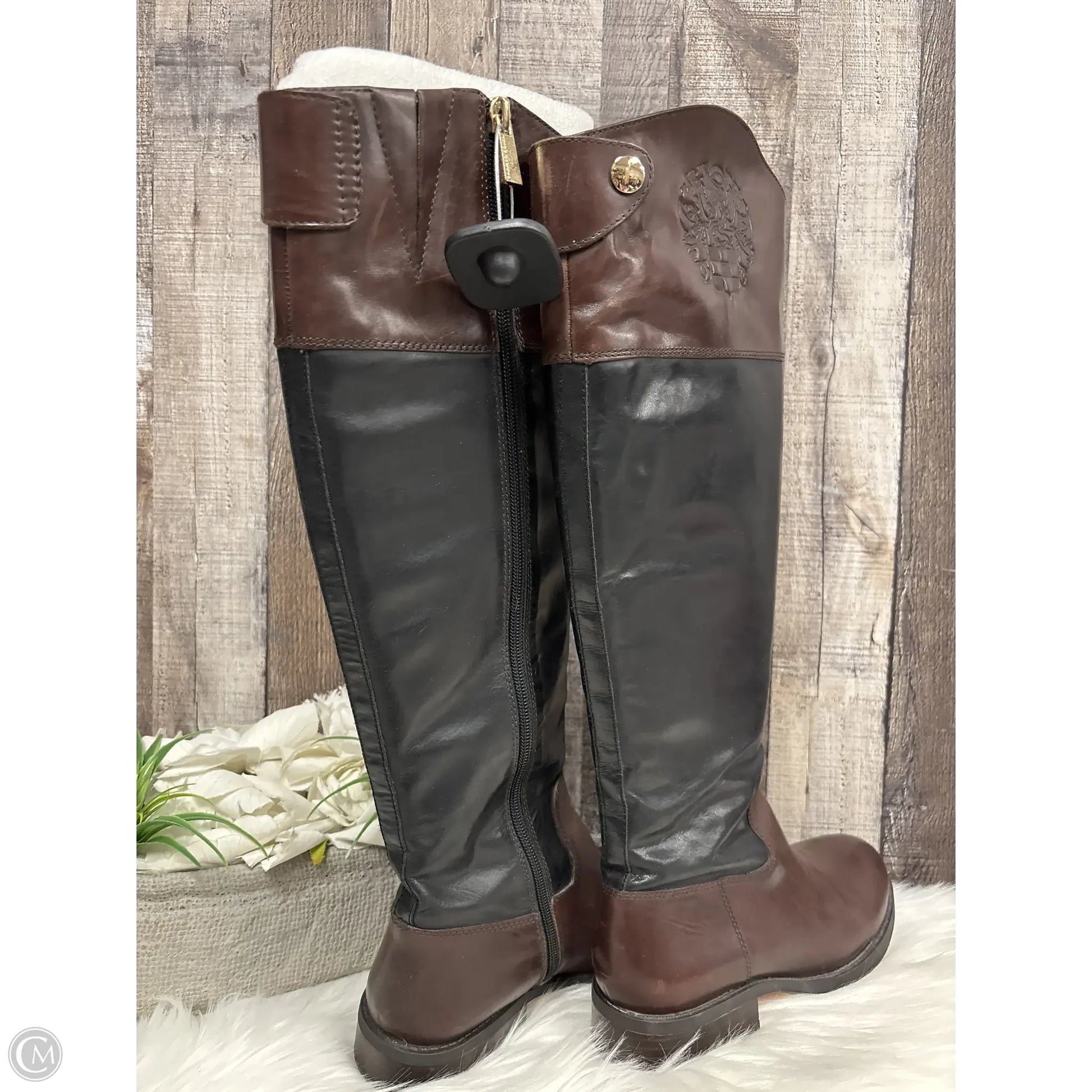 Boots Knee Flats By Vince Camuto In Black & Brown, Size: 6
