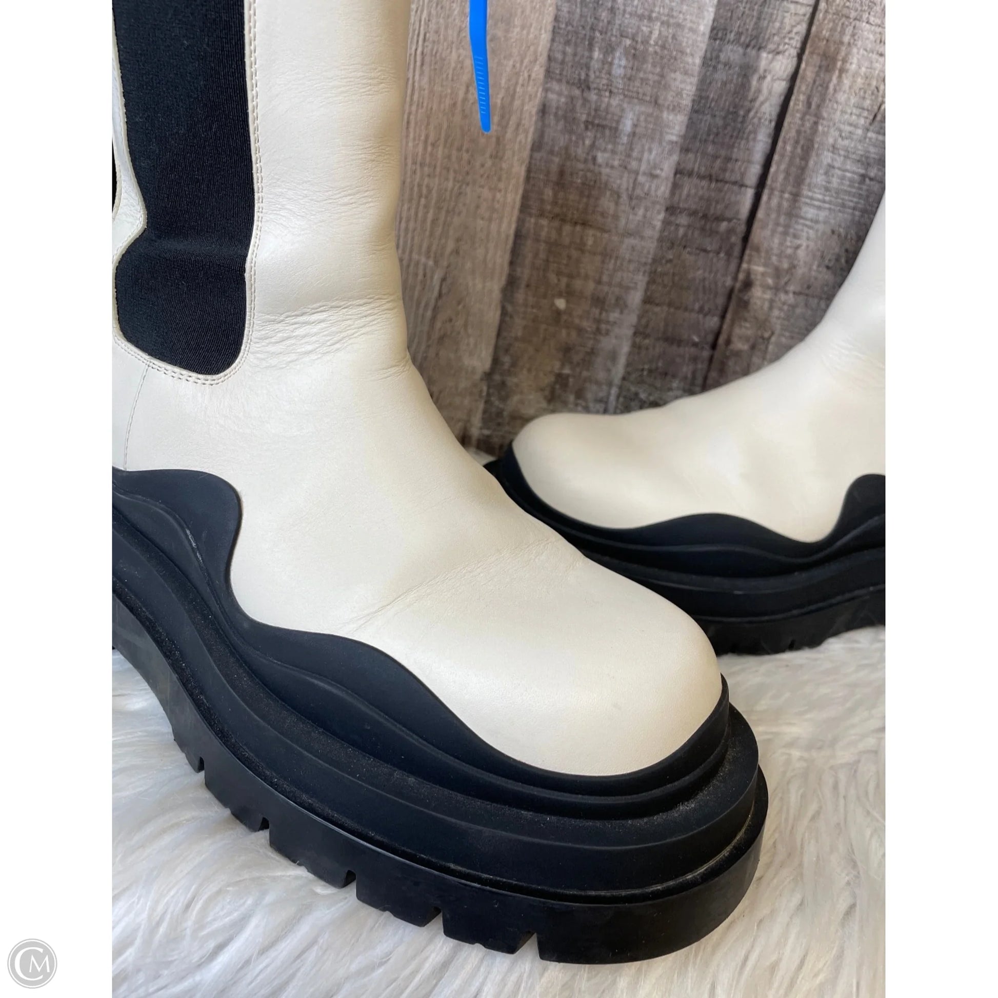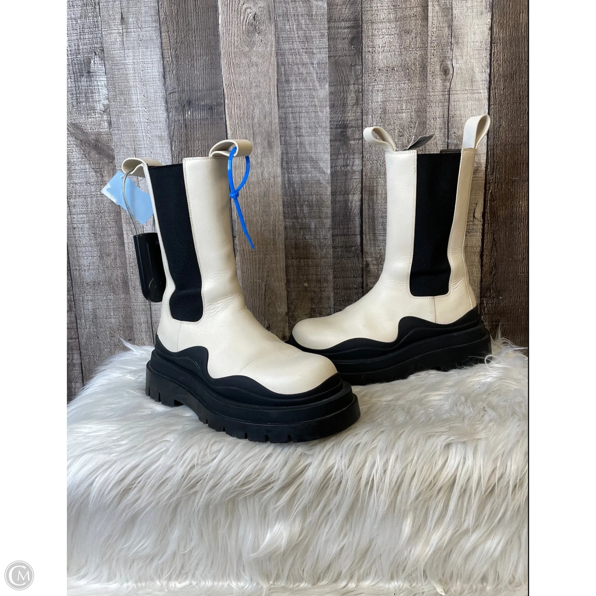 Boots Luxury Designer By Bottega Veneta In Cream, Size: 7