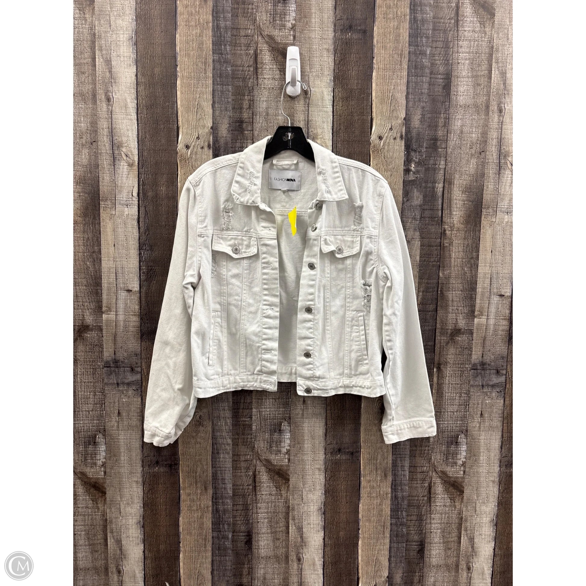 Jacket Denim By Fashion Nova In White Denim, Size: L