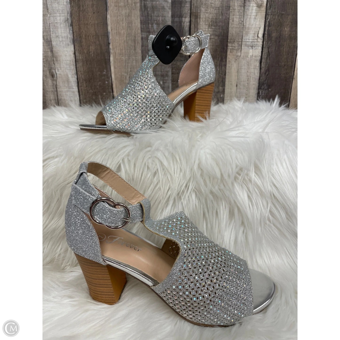 Sandals Heels Block By Forever In Silver, Size: 7