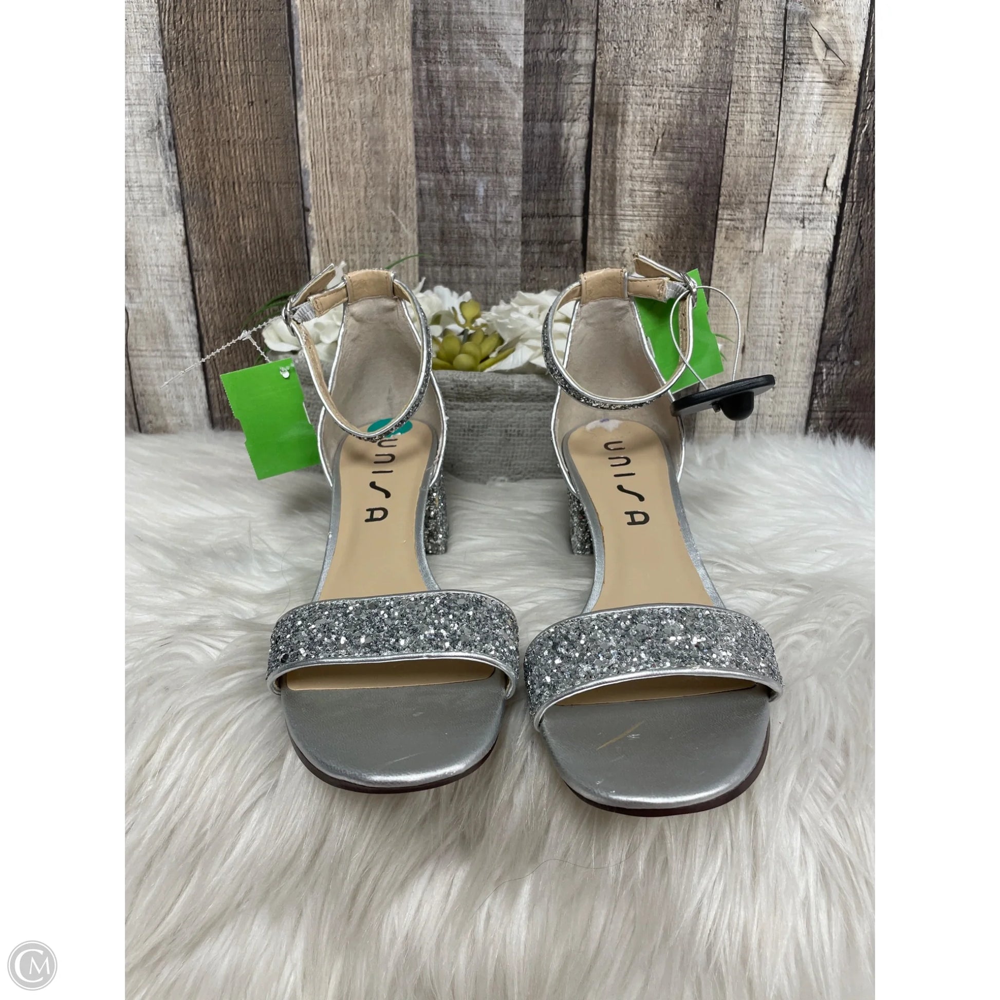 Sandals Heels Block By Unisa In Silver, Size: 8