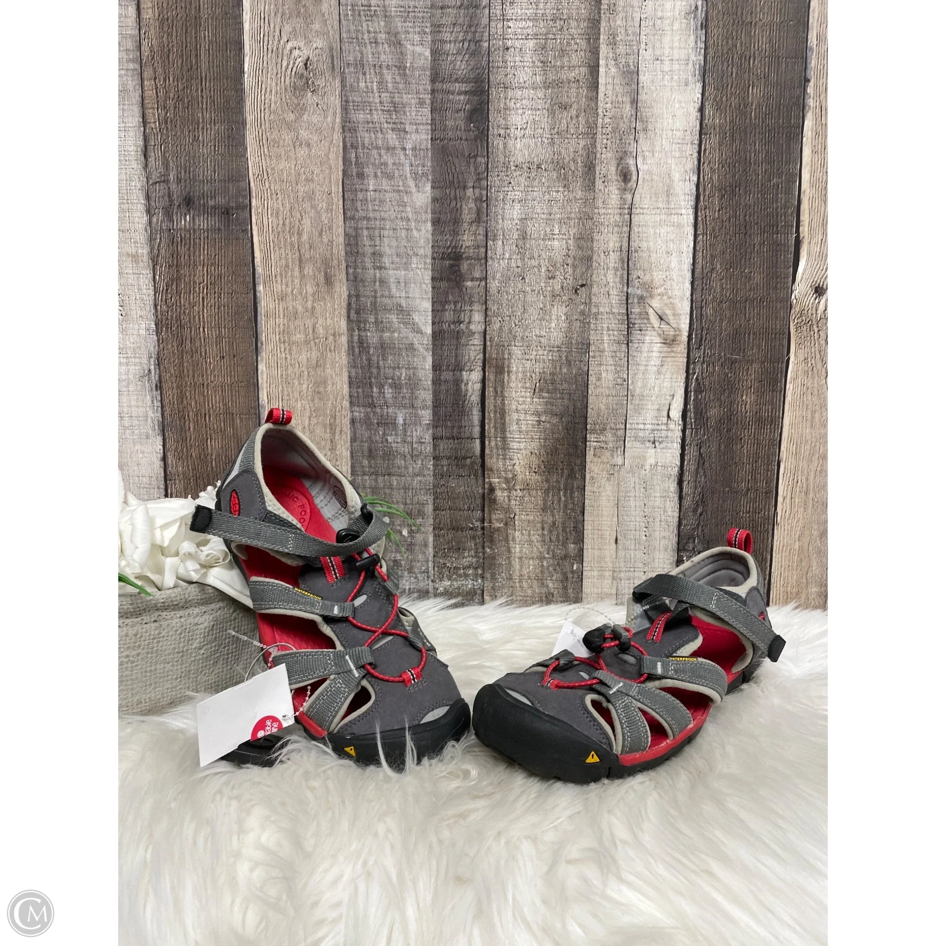 Shoes Hiking By Keen In Grey & Red, Size: 6