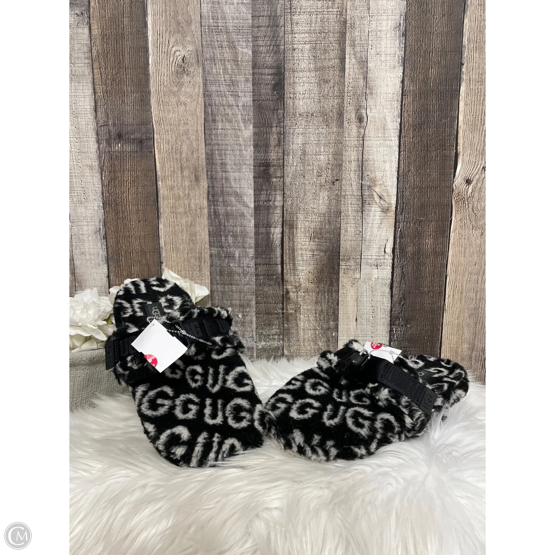 Slippers Designer By Ugg In Black & White, Size: 8