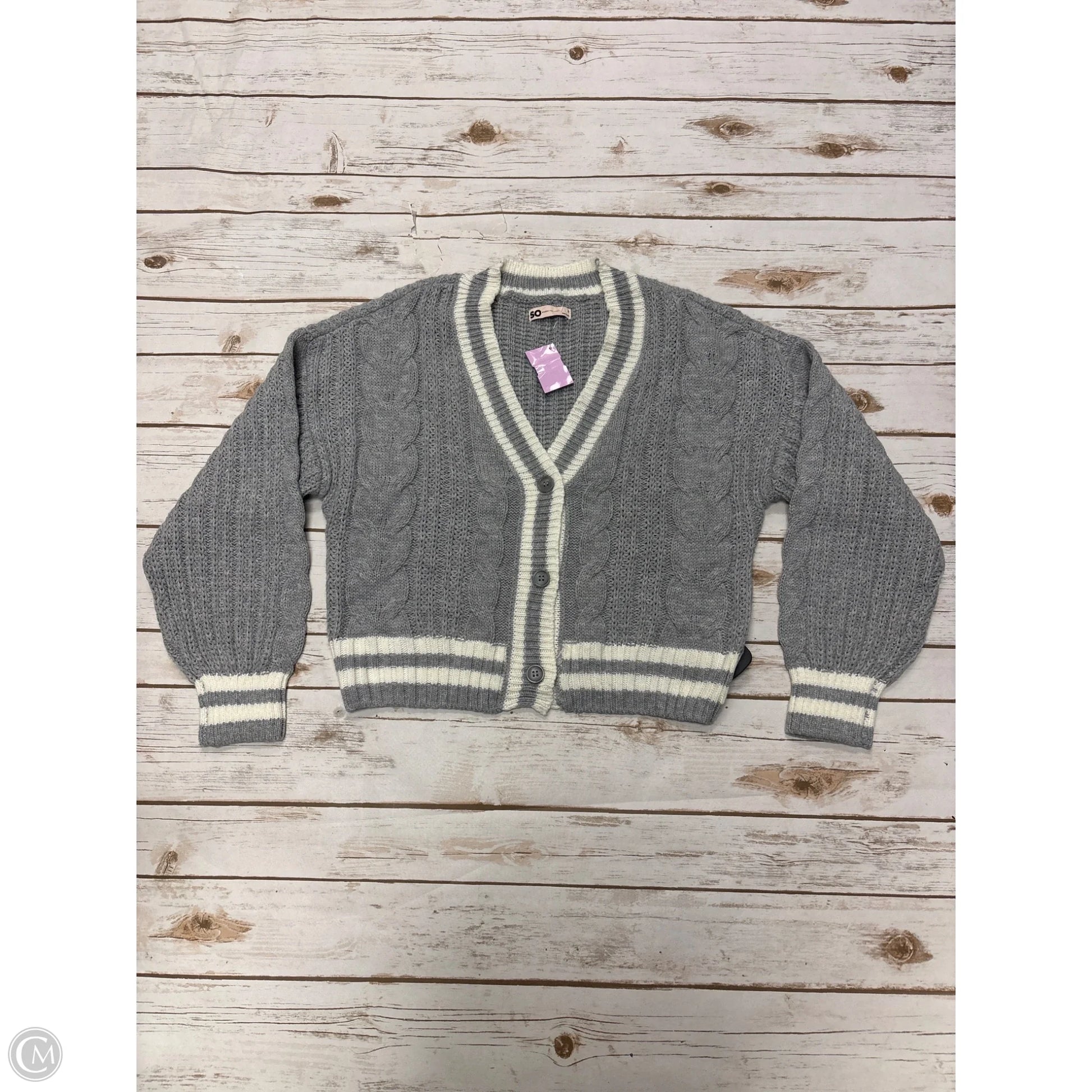 Sweater Cardigan By So In Grey & White, Size: S