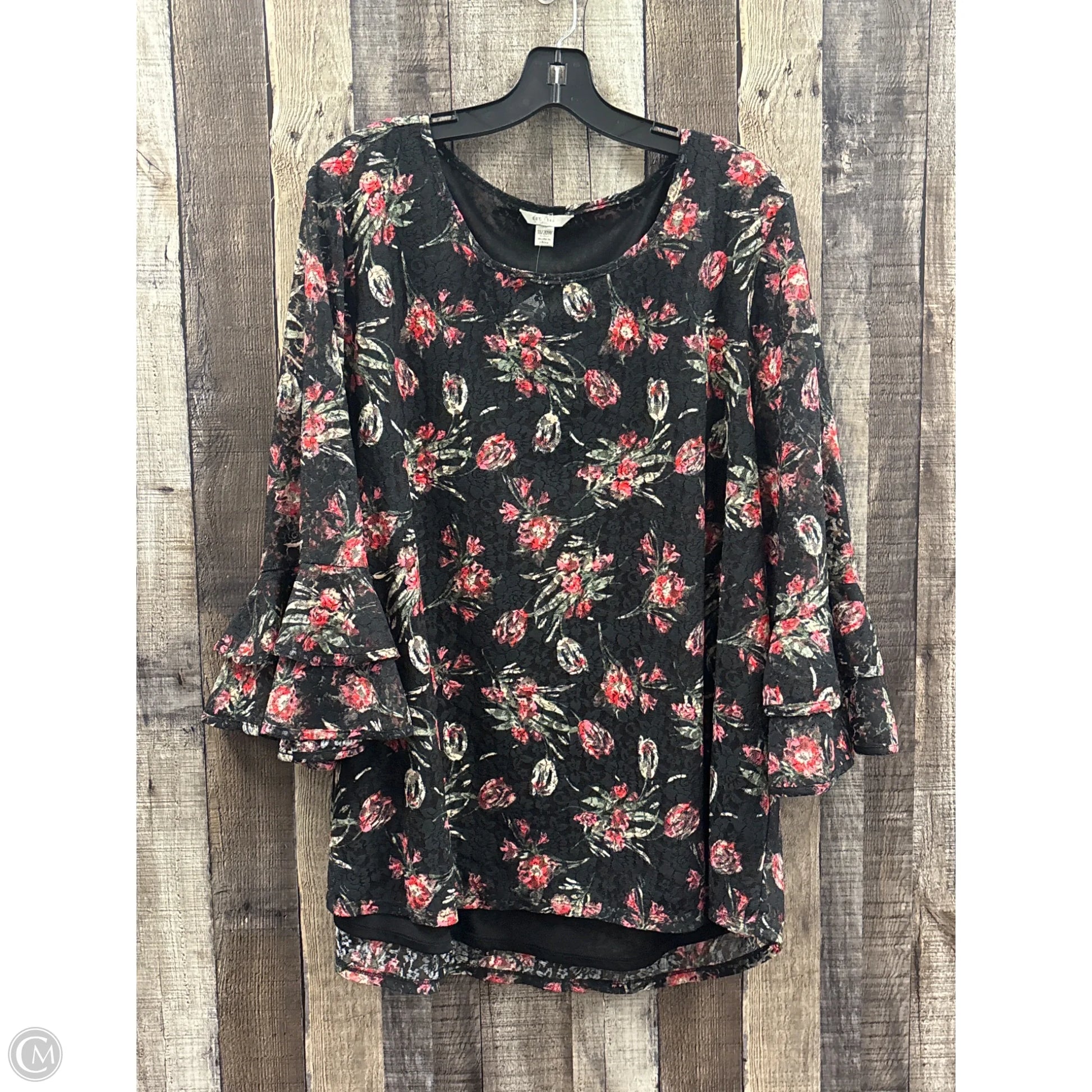 Top 3/4 Sleeve By Cato In Black & Red, Size: 1x