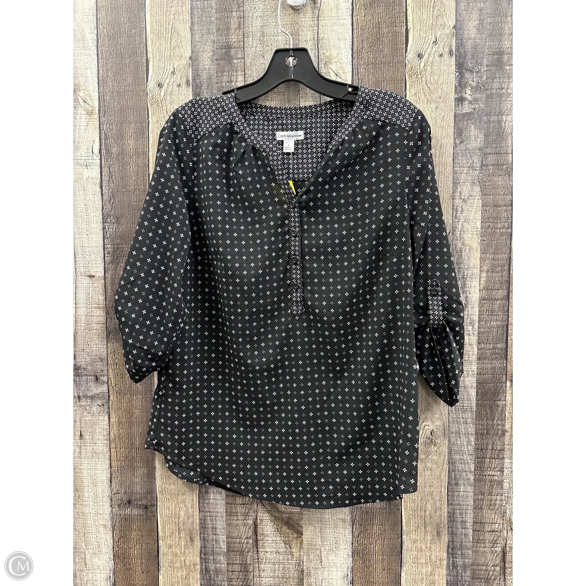 Top 3/4 Sleeve By Croft And Barrow In Black & White, Size: S