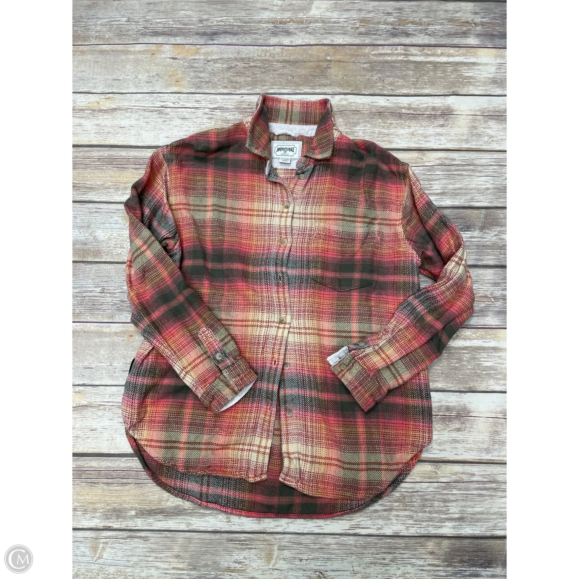 Top Long Sleeve By American Eagle In Plaid Pattern, Size: Xs