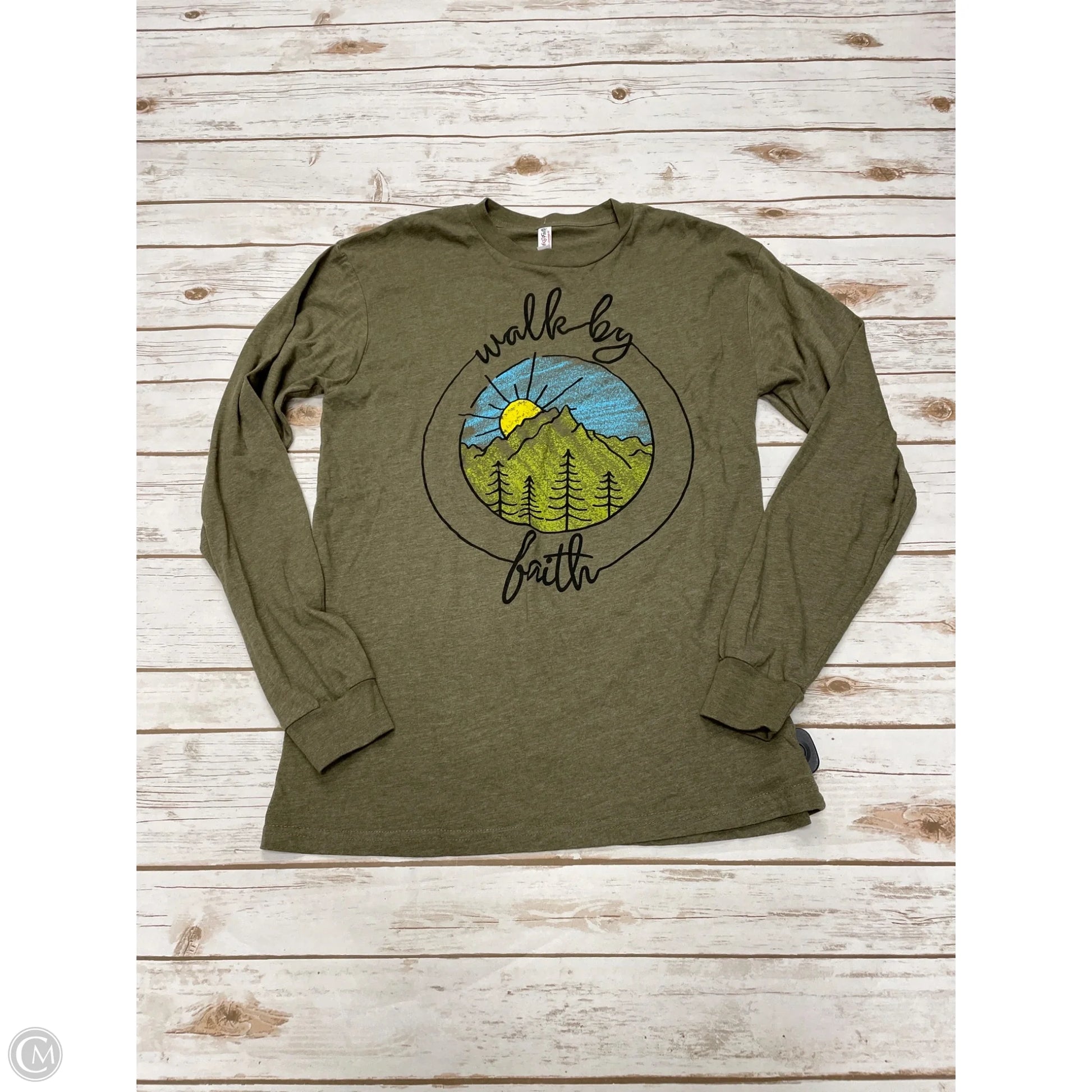 Top Long Sleeve By Cme In Green, Size: M