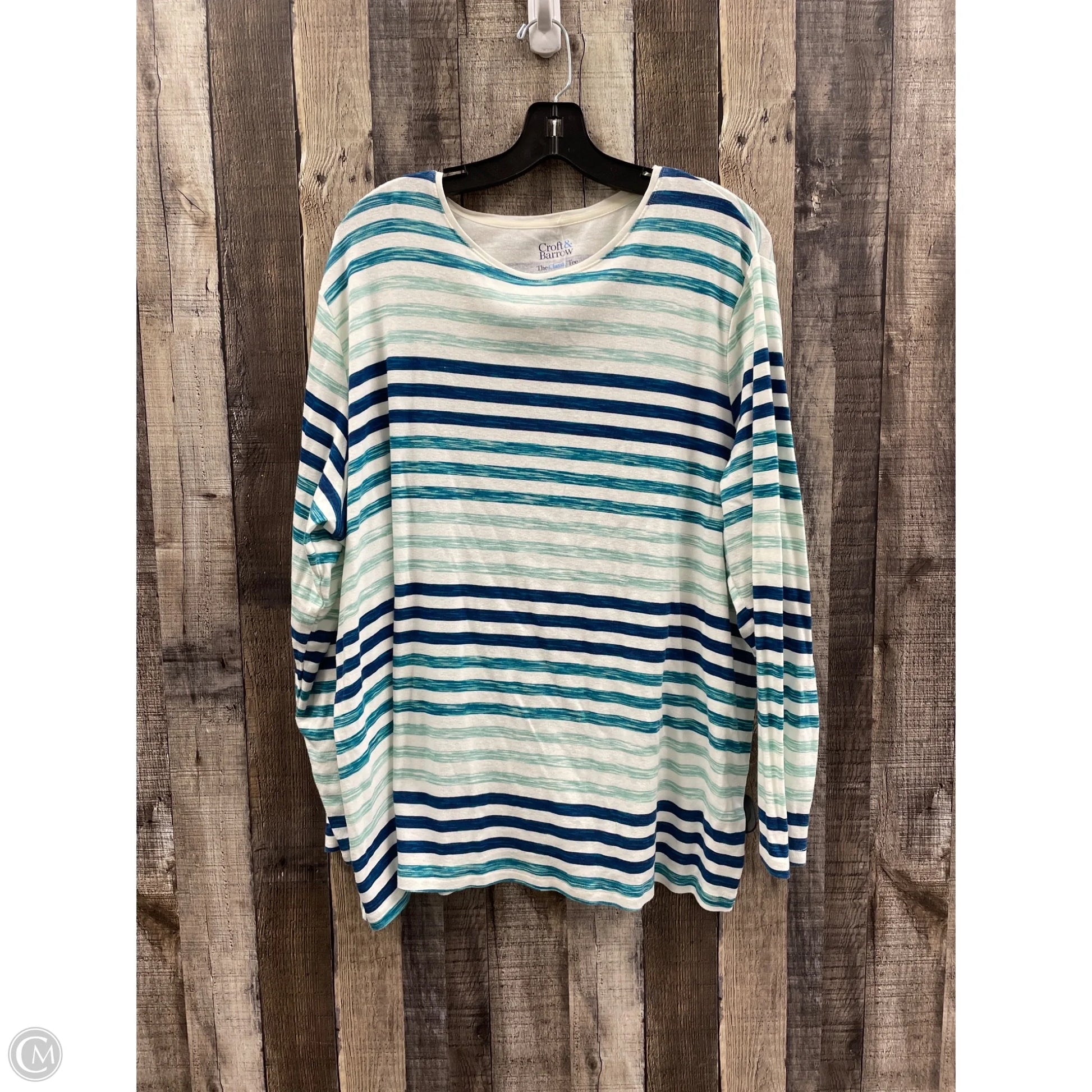 Top Long Sleeve By Croft And Barrow In Blue & Green, Size: 3x