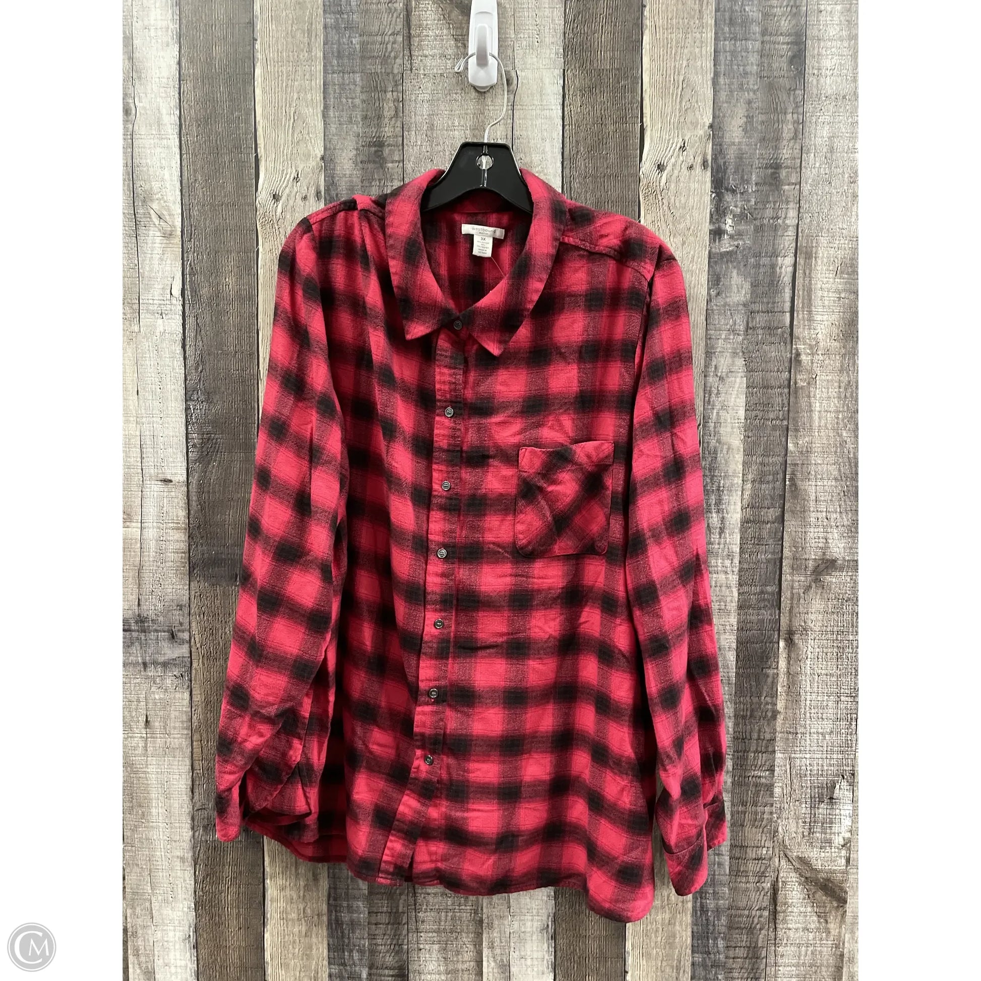 Top Long Sleeve By West Bound In Black & Red, Size: 3x