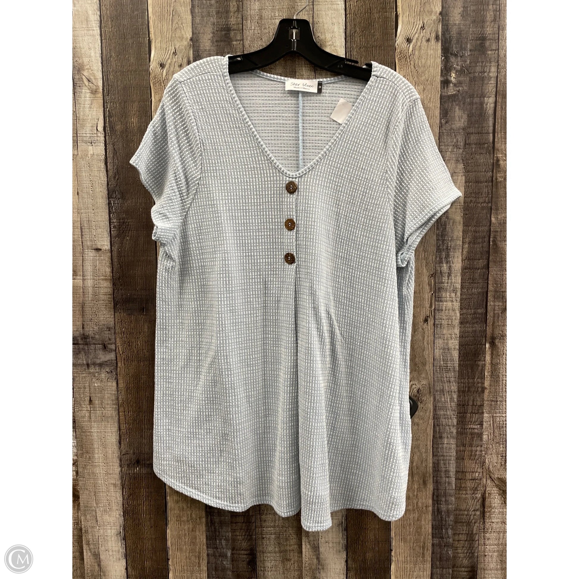 Top Short Sleeve By Cme In Blue & White, Size: 3x